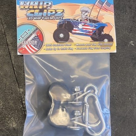 Whips and Shyt specializes in creating by hand LED lighted whips for high stress applications and the whips and Shyt whip is unlike any other Sand Car, UTV or SxS whip on the market today. The USA made CNC precision machined billet aluminum base has hardened steel stud with industry standard ½-20 thread pitch. The base design give it the unique ability to be used with or without a quick release which is great if you are using folding mounts. The ½ inch fiberglass pole is thick and durable and is glued as well as secured with a mechanical fastener for the strongest hold. The pole is stiff and is designed to stand straight and tall even with a 3×5 flag. Remember the taller your safety flag is the more likely you will be seen by on coming traffic.